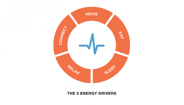 There are 5 drivers to generating energy: moving, eating, sleeping, relaxing, and connecting. When leaders make regular investments into those 5 drivers, they create a pattern that is self-sustaining. Below are the 5 drivers, along with some practical tips to leverage the driver to generate energy.